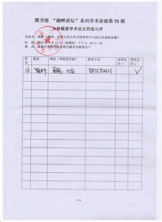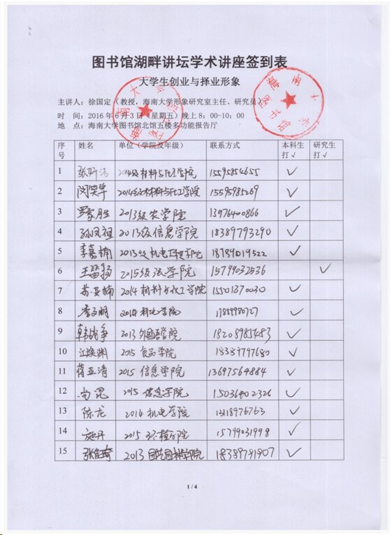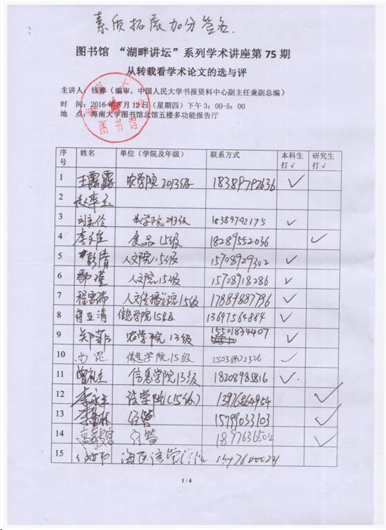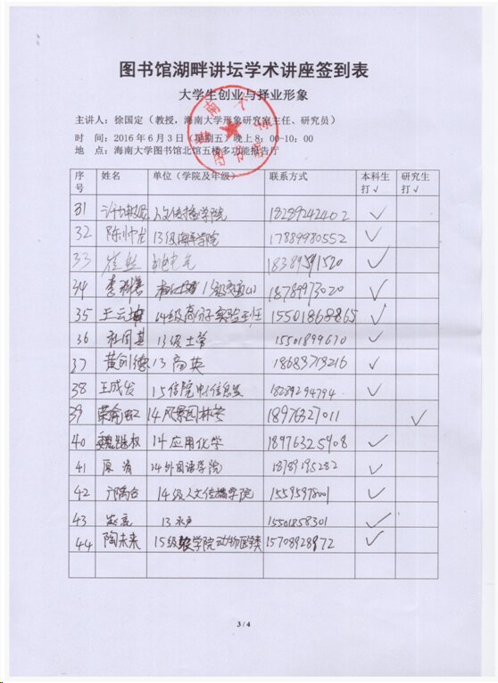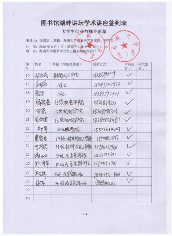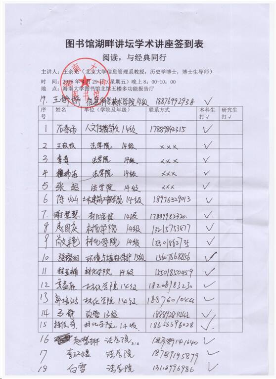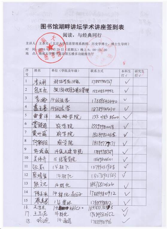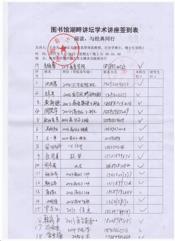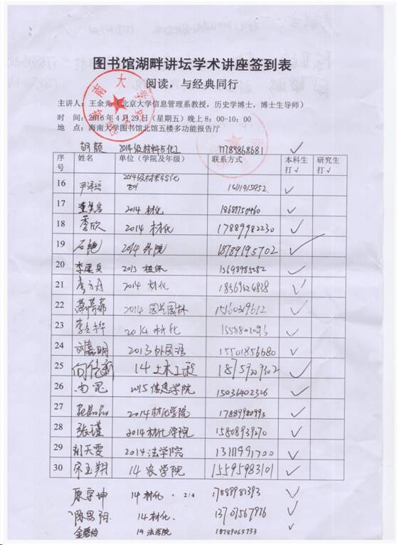 湖畔讲坛签到表(2016.4.29-2.16.6.3)