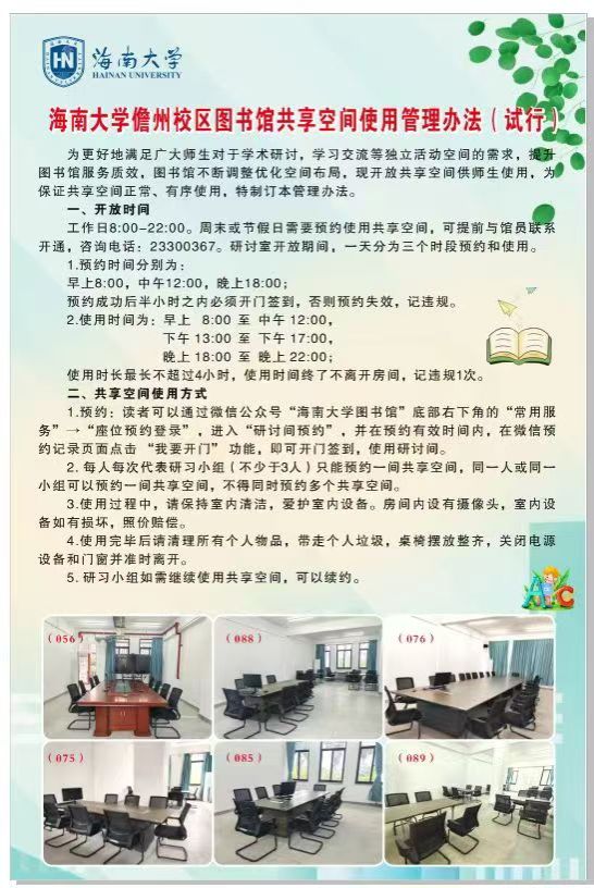 海南大学儋州校区图书馆共享空间使用管理办法(试行)