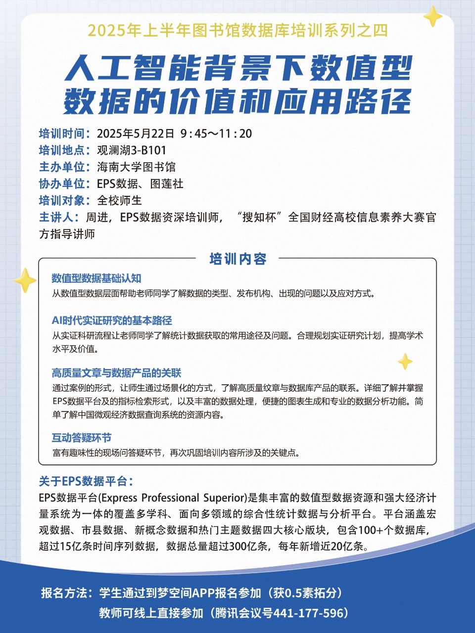 主 讲 人:周进,EPS数据资深培训师,“搜知杯”全国财经高校信息素养大赛官方指导讲师
