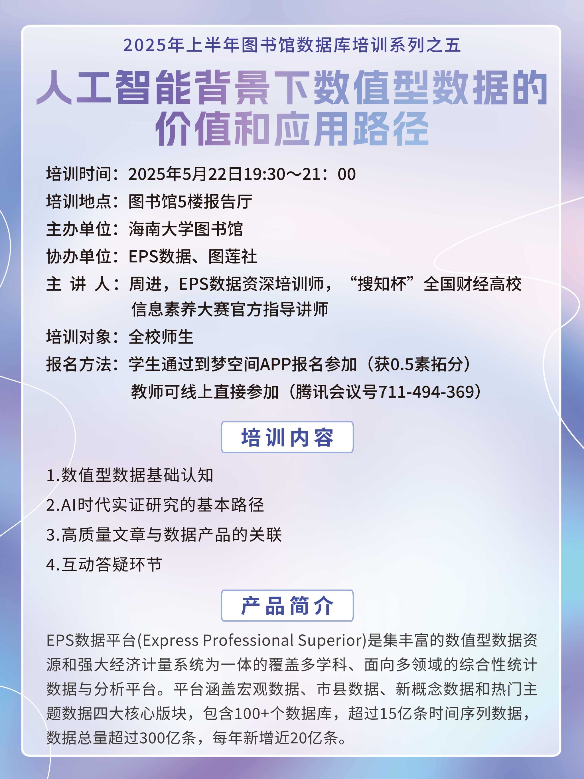 主 讲 人:周进,EPS数据资深培训师,“搜知杯”全国财经高校信息素养大赛官方指导讲师