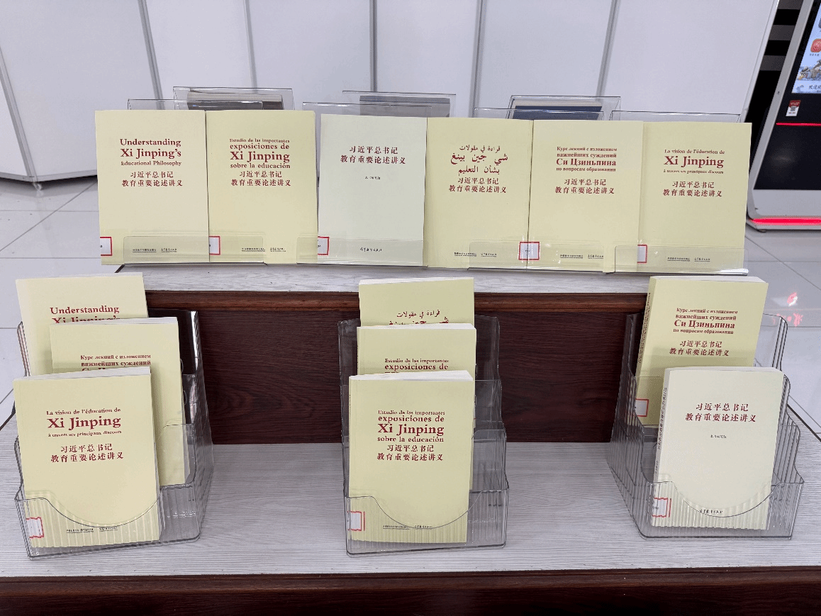 为深入学习领会习近平新时代中国特色社会主义思想,特别是习近平总书记对教育事业的系列重要指示批示精神,进一步促进中外教育文化交流互鉴,提升我校师生的国际视野和跨文化理解能力,图书馆现上架《习近平总书记教育重要论述讲义》中文、英文、法文、俄文、西班牙文、阿拉伯文等中外文重要版本。