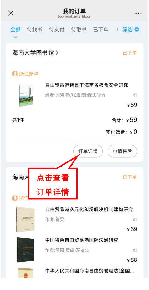 5.确认收货,订单签收后,将在读者的“海大e卡”上形成借书记录;