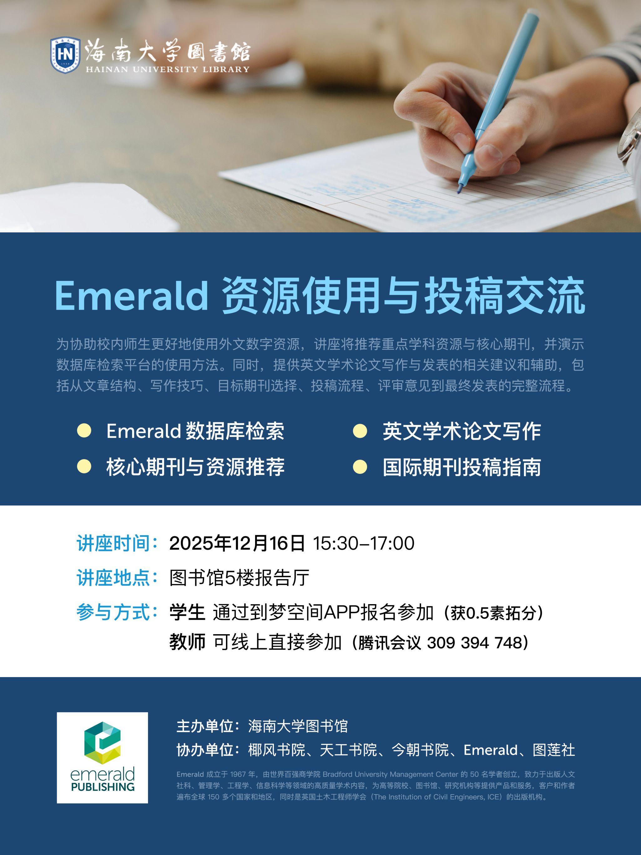 培训主题:Emerald资源使用与投稿指南