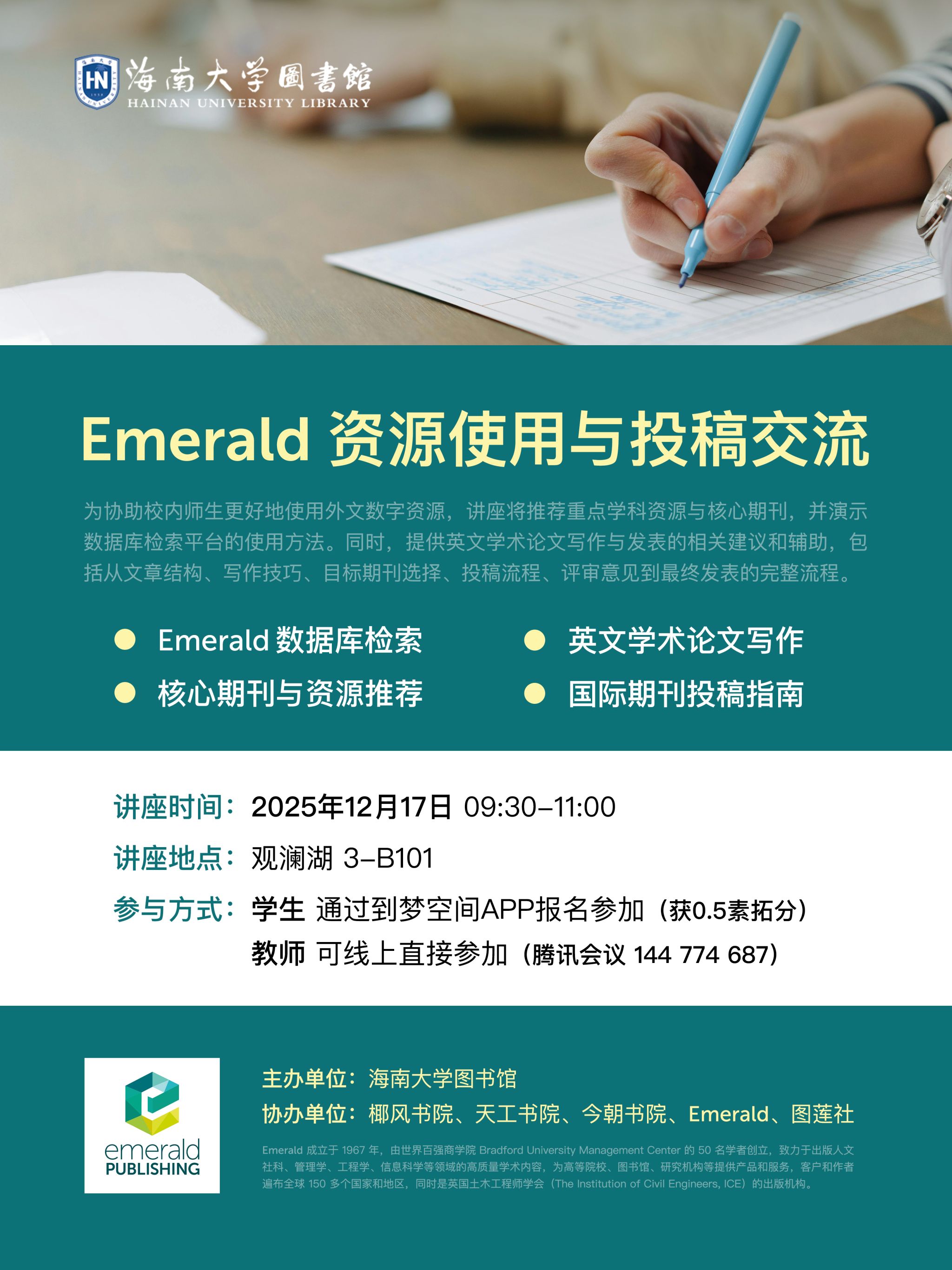 培训主题:Emerald资源使用与投稿指南