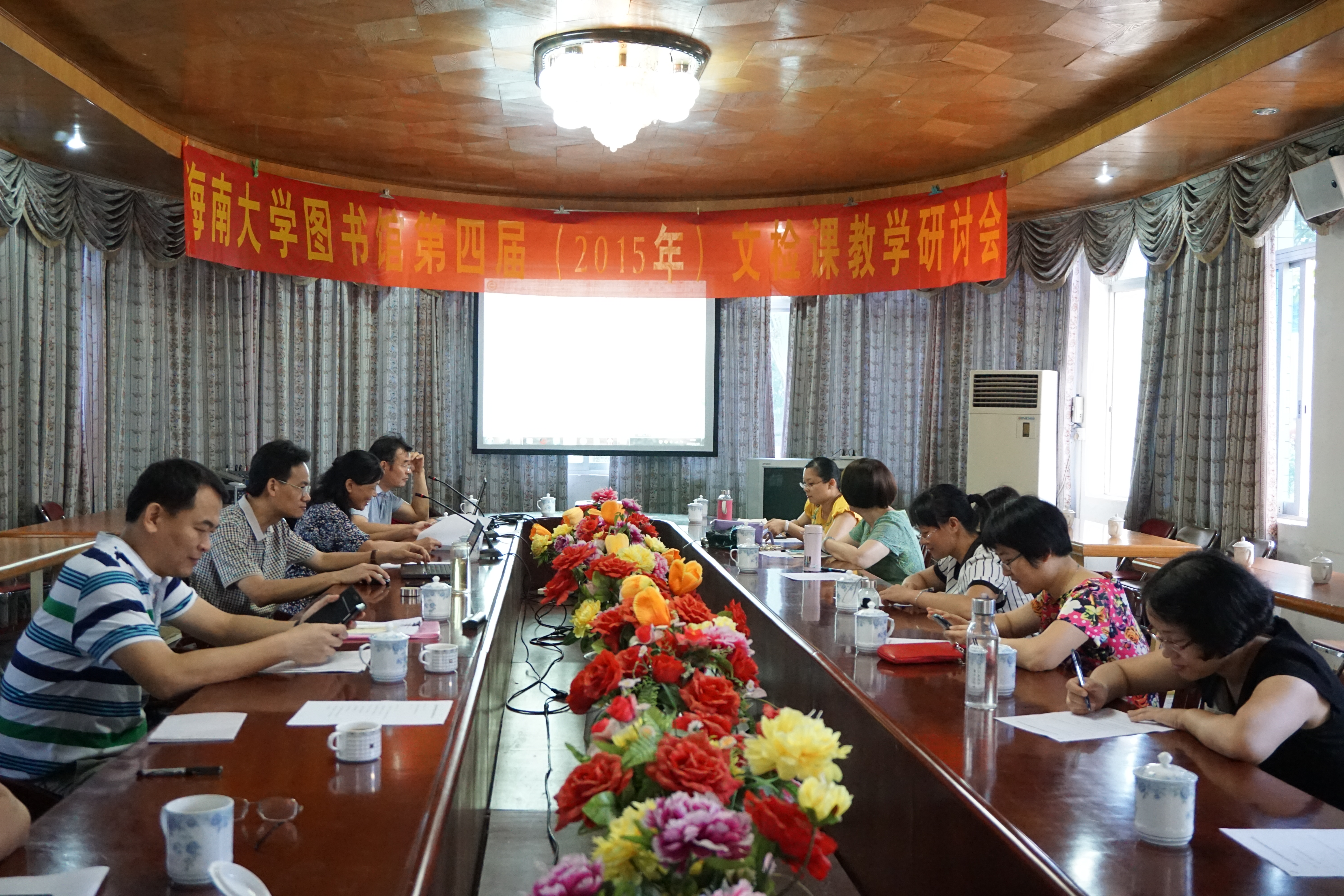2015年7月10日,海南大学图书馆第四届文检课教学研讨会暨首届查新研讨会在儋州校区会议室成功召开。王琦馆长和海甸、儋州校区文检课教师及查新人员共19人参加了会议。会议由王小会副馆长主持。