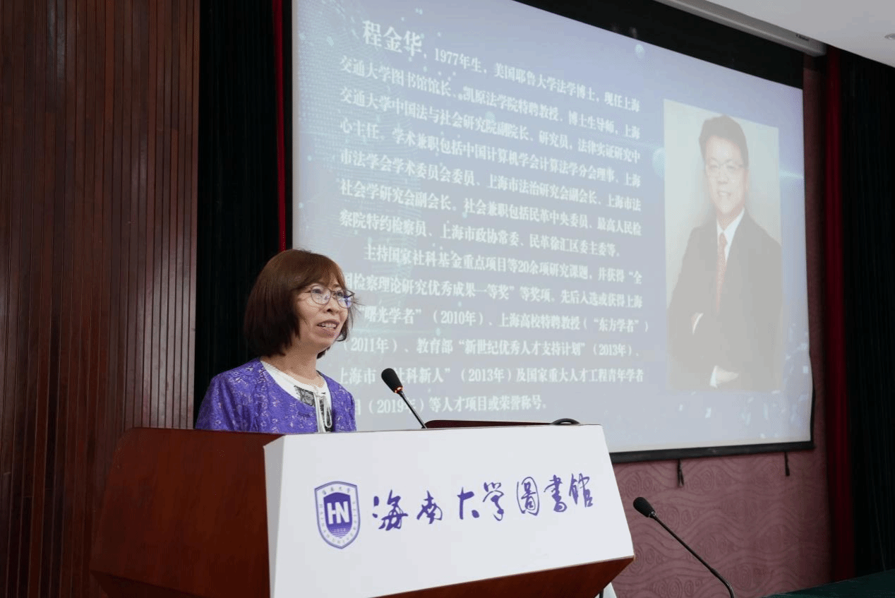 会议第二阶段由海南大学图书馆执行馆长郭晶主持。首先,上海交通大学图书馆馆长程金华以“踔厉奋发图致远,圕流不息继书香”为题,对上交大图书馆整体工作进展、尤其是服务于“教育、科技、人才”一体化所开展的创新服务作了全面介绍,特别分享了在专业化、智慧化图情服务格局下,图书馆在支撑学科发展态势分析、助力高水平人才引进、服务科技创新、规划未来学习中心等方面的多项举措和实践案例,并强调品类丰富、质优量广的文献信息资源建设是开展深层次学科化与智慧化服务的前提条件。