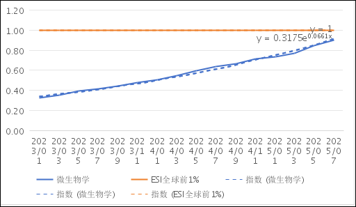 4.微生物学学科在全球排名为839名,与本期进入全球排名前1%的790家机构相比,还有49位次的差距。该学科本期潜力值(90.02%)较上一期(85.06%)上涨4.96%,根据当前的发展态势预测,该学科有望2026年1月进入ESI全球前1%。药理学和毒理学在全球排名为1463名,与本期进入全球排名前1%的1370家机构相比,还有93位次的差距。该学科本期潜力值(90.04%)较上一期(87.01%)上涨3.03%,根据当前的发展态势预测,该学科有望2026年3月进入ESI全球前1% 。