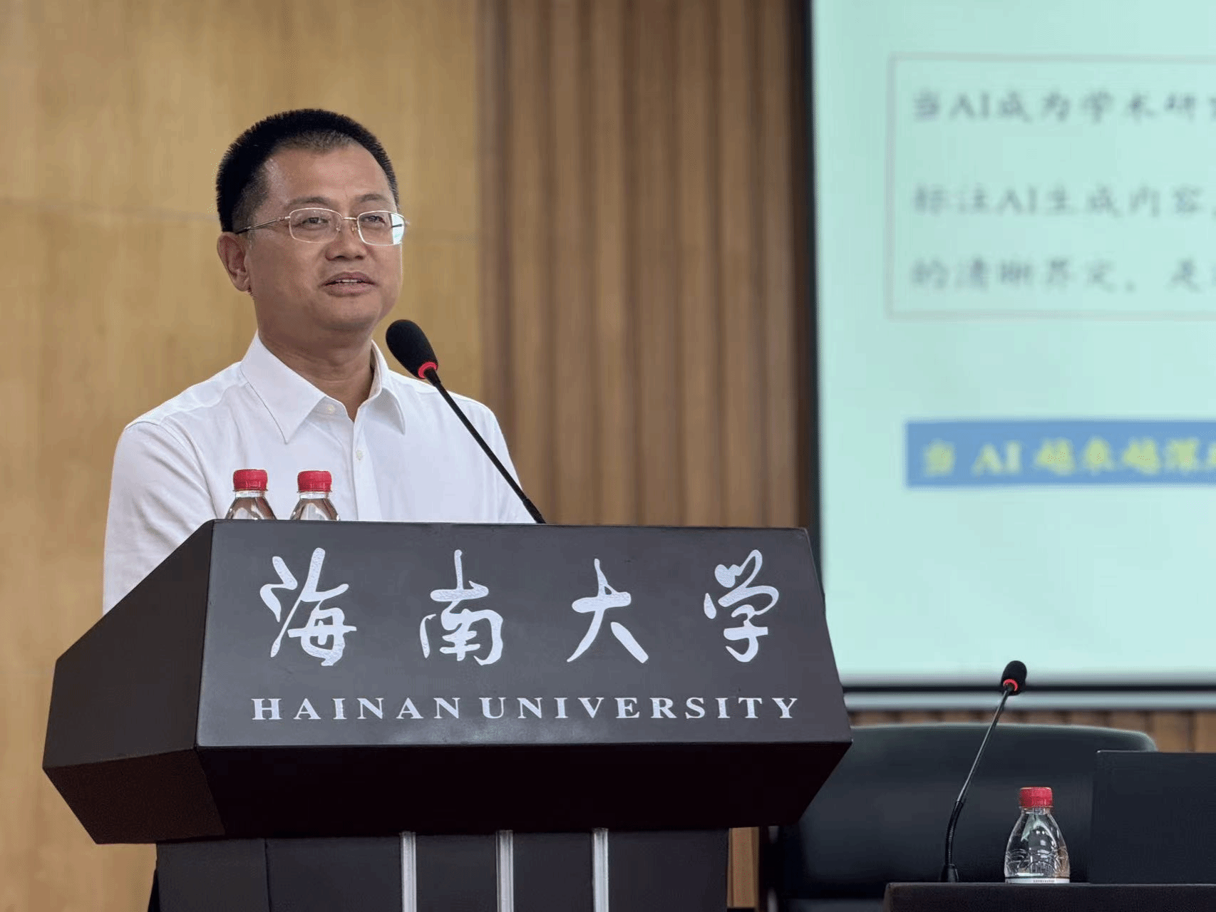 2025年9月16日,海南大学“AI素养训练营”在行政楼一楼报告厅正式启动。校党委常委、副校长高佃恭出席,主讲专家、上海交通大学图书馆教学支持中心主任张晗及师生200余人参加。开幕式由图书馆执行馆长郭晶主持。