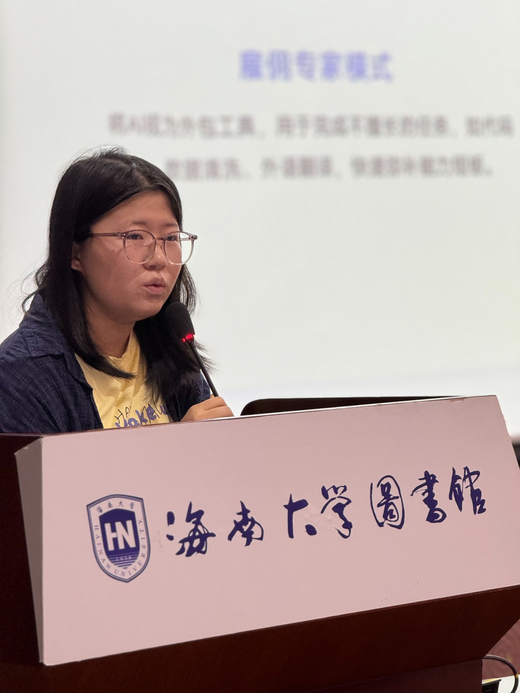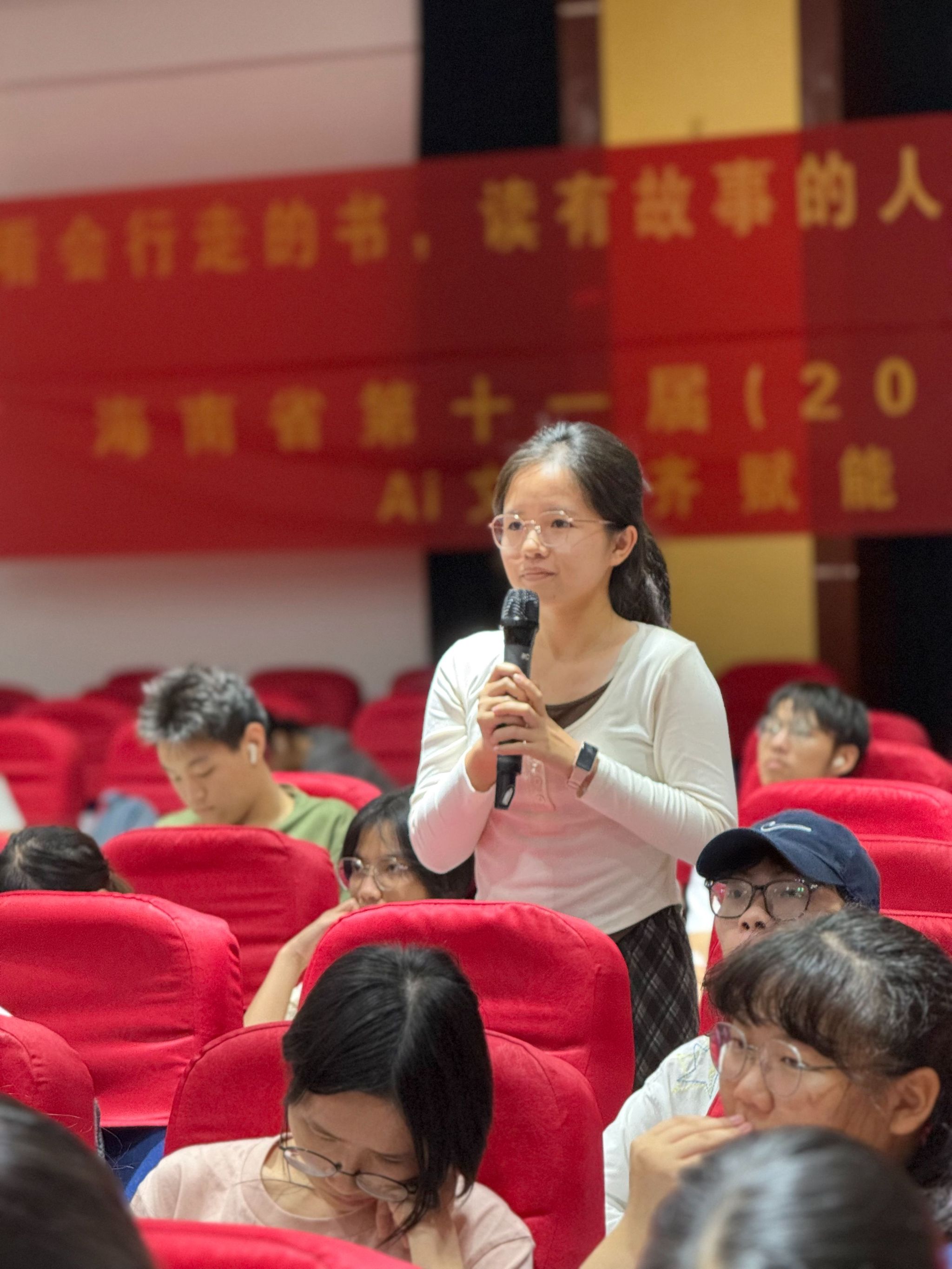 近日,海南大学图书馆内气氛热烈,“乐享·悦读”同龄示范AI素养训练营顺利举办。活动特邀网络空间安全学院研究生邢奇强、法学院本科生武乃琦分享AI应用经验,现场互动频繁,干货满满。