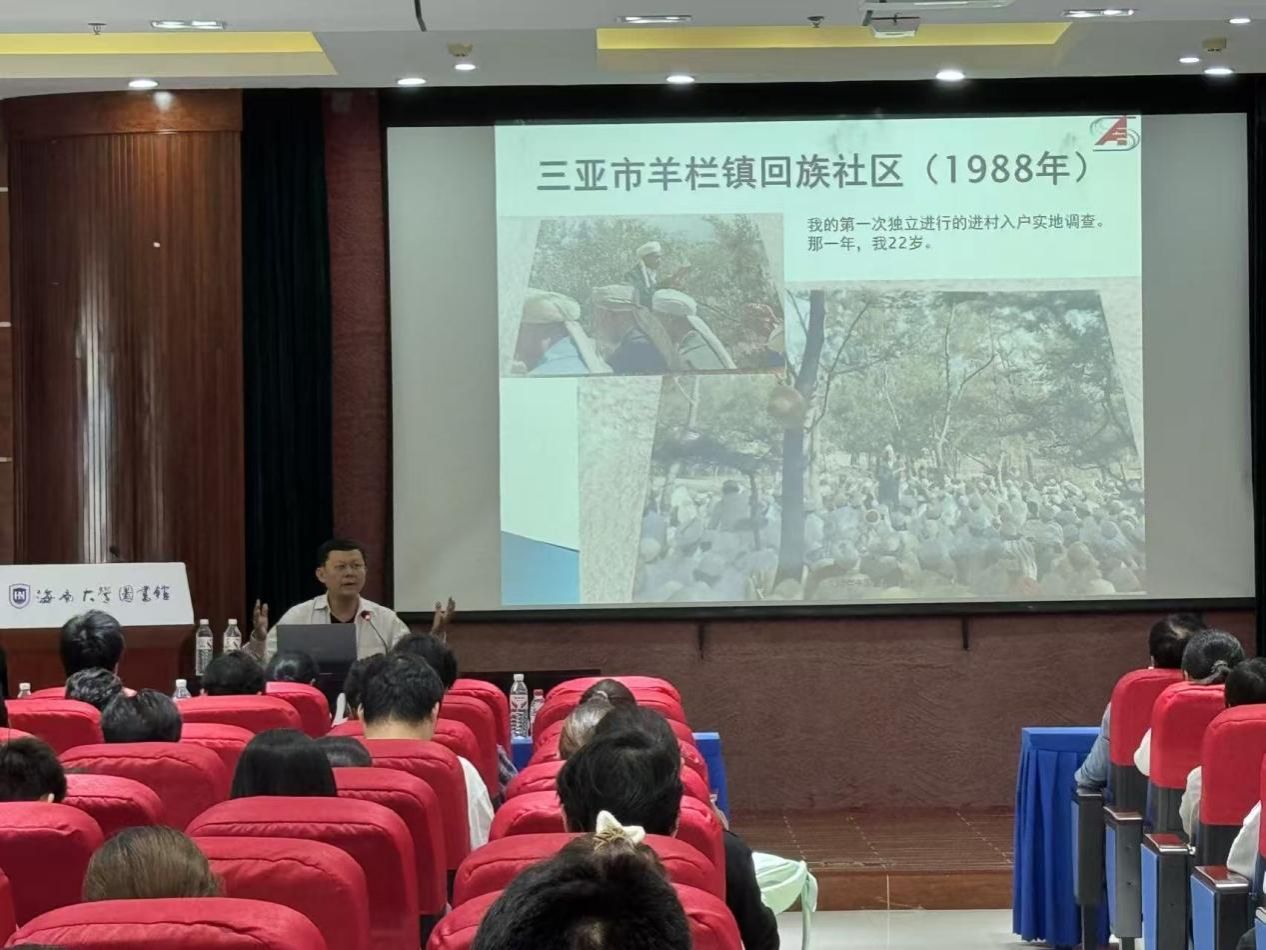 张继焦在讲座中提出“伞式社会”与“蜂窝式社会”等创新理论框架,阐释海南作为移民社会形成的“二元结构”特征,并通过族谱、侨批档案等珍贵史料,生动展现了“有海水的地方就有海南人”的侨乡文化格局。