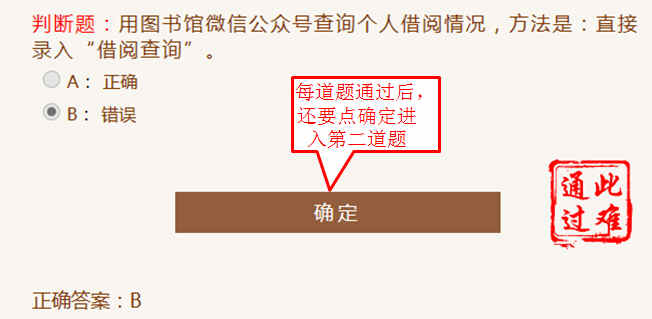 三、闯关时,出现的是猴子、石头、人参果等等,逐一点开即可进行测试。每个模块闯关有5道题,每个模块只允许错一道,错两道则返回重新本模块的测试。(建议测试时把图书馆发的折页带在身边,一边看一边测试)。