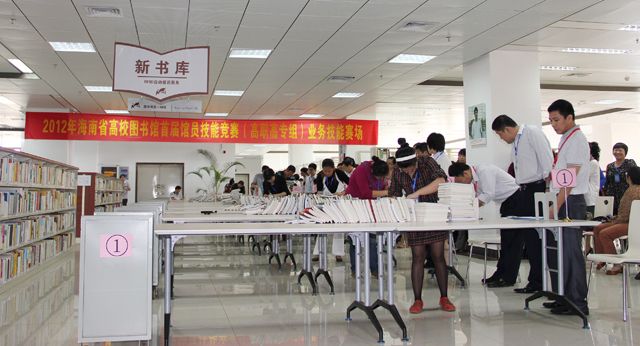 为进一步加强海南省高校图书馆服务文化体系建设,提高图书馆第一线服务人员的服务意识和业务技能,建设一支高水平的专业队伍,更好地服务于海南省高等教育教学改革和发展,实现《海南省高校图书馆“十二五”发展规划》中提出的“四个中心一平台”(文献信息集成中心、知识服务中心、自主学习中心、校园文化中心和全省科研创新服务重要平台)的建设目标,由海南省教育厅主办、省高校图工委协办、海南经贸职业技术学院和海口经济学院承办的“‘凤凰传媒杯’海南省高校图书馆首届馆员技能竞赛(高职高专组)”于2012年11月30日在海口经济学院图书馆隆重举行。