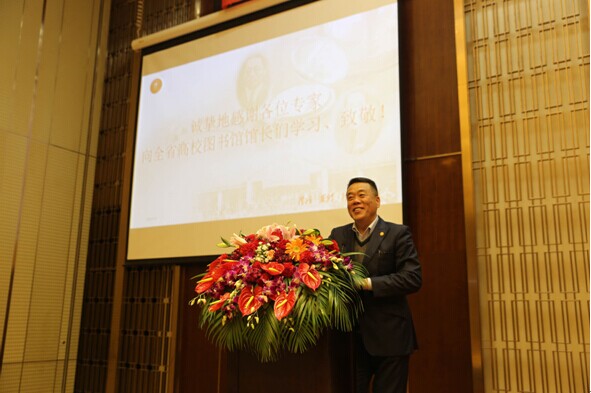 省教育厅高教处邓昌清副调研员代表省教育厅领导致辞,他对全省高校图工委的工作给予了充分肯定,也对新一年的工作提出了要求。省高校图工委主任詹长智作省高校图工委2014年度工作报告,并传达了中南六省区高校图书馆学术年会、教育部高校图工委四届二次会议、全国高校图书馆“十三五”规划研讨会等三个会议的主要精神。他在报告中介绍了省高校图工委过去一年所做的10多项学术活动和业务工作,报告高度评价阅读推广优秀案例评选活动、服务创新案例研讨活动、信息素养教育教学研讨活动,以及本省馆员积极参与省外学术活动所取得的良好效果。报告中还回顾了海口经济学院图书馆奋力抗击台风灾害的感人事迹。