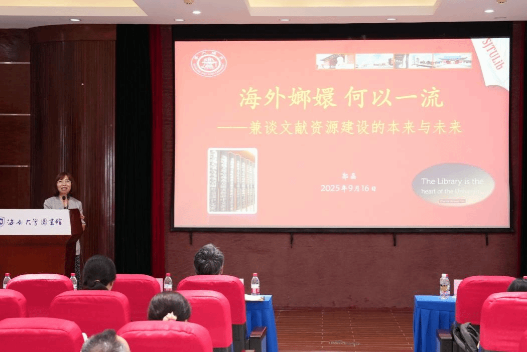 海南大学图书馆执行馆长郭晶作《海外嫏環 何以一流:兼谈文献资源建设的本来与未来》专题学术报告。以哈佛大学等国际一流大学为例,阐述特色资源建设对于教育学术发展与提升全球影响的重要性。她强调特色资源建设应朝着数字化、网络化、智能化方向发展,注重以特色资源催生新的学术方向,凝聚世界范围的学术交流社区,从而保障学术研究的前沿性、体系性、溯源性。同时,要密切结合“双一流”建设任务与学校发展目标,筑牢根基,持续积累,守正创新。最后,她鼓励图书馆员积极参与到特色资源建设中来,共同推动图书馆事业的高质量发展。